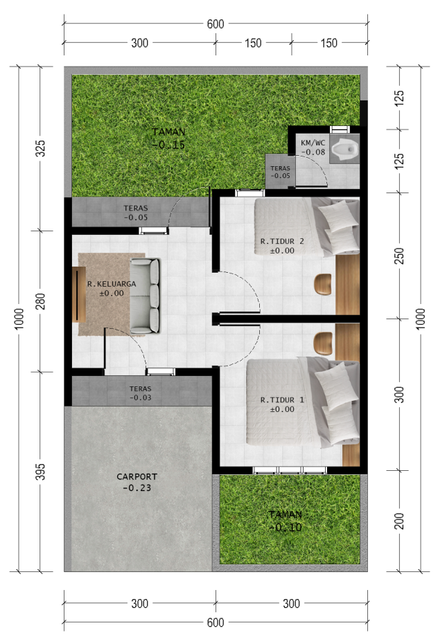Denah Rumah dengan Lebar 6m dan